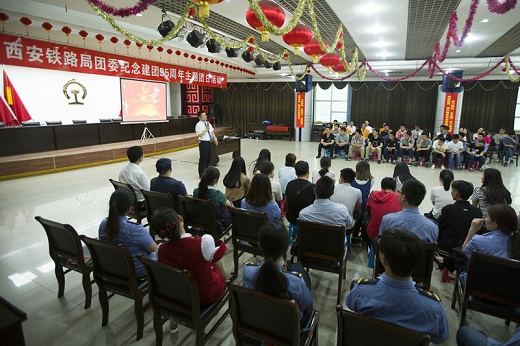 5月12日,西安机务段团委在调度楼五楼举办纪念建团95周年主题团日活动,地区联合会各单位团委书记,优秀青工代表100余人参加活动。