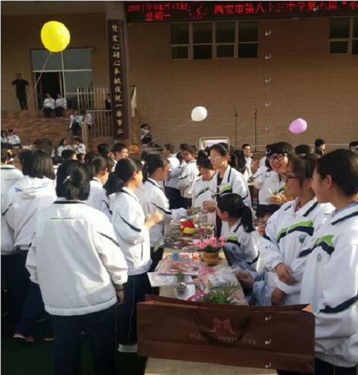 4月12日,一年一度的“小葵花”爱心义卖活动在我校团委的组织下火热举办。本次活动的主题是“同城同心能帮就帮,爱心牵手传递温暖”,目的是通过学生的主动参与,将所得利润作为善款捐赠给西安市教育局小葵花爱心基金会,给山区孩子送去温暖与爱心。