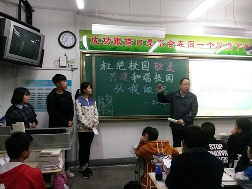 4月12日晚,阎良区关山中学高一、高二年级分别开展了“预防校园欺凌共建和谐校园”主题班会活动。学校校级领导走进课堂和同学们一起参加了活动。