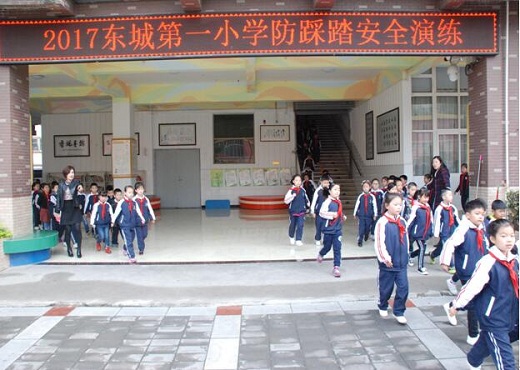 为了加强师生上、下楼梯的安全管理工作,增强安全意识和自我保护能力,防止发生地震、火灾等意外事故时出现学生踩踏事件,在校德育处组织下,队课铃响后,校园广播对全体同学进行了防踩踏的安全教育讲座,随后,低年级同学在老师的组织下进行安全演练。在广播员的指令下,一、二年级正、副班主任及各楼梯处、楼梯口的安全员以最快的速度到达所在演练岗位,组织学生快速、安全地疏散到安全地带。师生们沉着冷静、互相合作,行动有序,按照学校制定的上、下楼梯紧急疏散演练方案,以最好的秩序,最快的速度,圆满地完成了此次演练任务。最终,到达操场整理队伍,报告人数,总指挥王校长进行了活动总结。