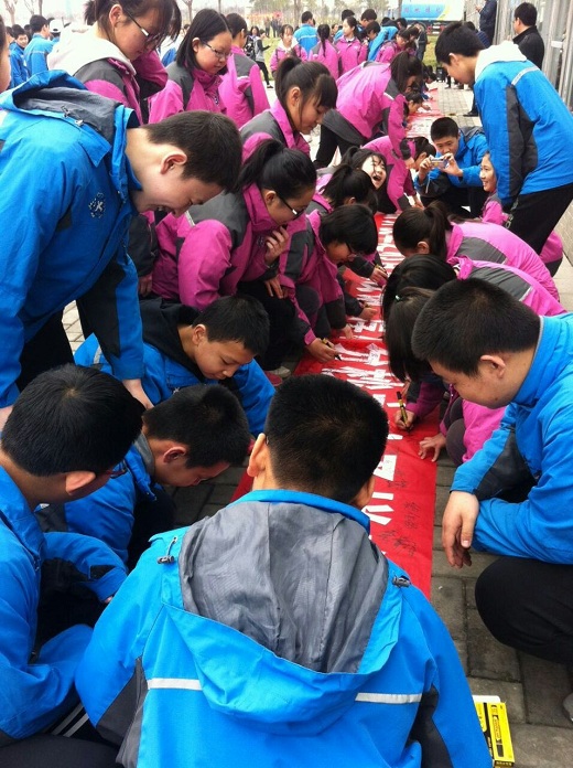 仪式后,同学们和老师一起在宣誓的横幅上签下了自己的目标和名字,种下一棵棵希望之树,挂上了中考冲刺心愿卡。我们相信,今天的小树,一定会长成为明天的栋梁!