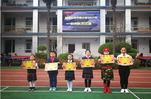 3月27日下午,新城区坤中巷小学的操场上口号声声。这是学校2017年队列队形比赛正在进行中。