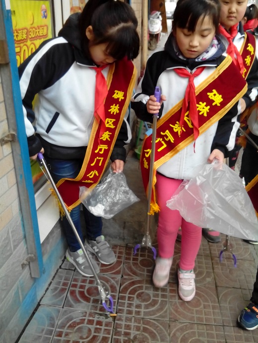 3月里,春光明媚,和风阵阵。东厅门小学师生代表组成的“厅小环保卫士”小队在少先队辅导员老师的组织带领下,走出校园,走进社区,对我们学习、生活周边环境展开了“小手拉大手 垃圾不落地 西安更美丽”学雷锋环保活动。