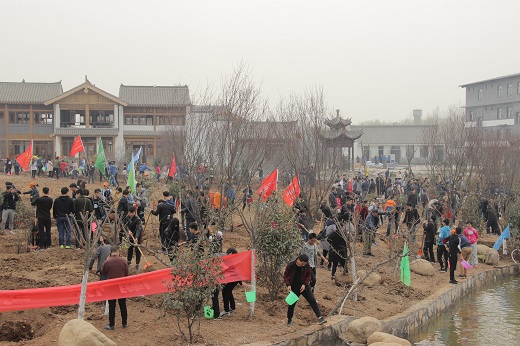 植树活动现场,彩旗迎风飘扬,大家拿起铁锹、水桶等工具,扶树、培土、踩实、浇水,分工协作,相互配合,合力栽下一株株树苗,种下一棵棵希望。植树现场,处处是忙碌的身影,个个干劲十足,热情高涨,在不到两个小时的时间里,沿白鹿仓景区千米水系,栽植了大叶女贞、石楠、桃树、杏树、樱花树、松树等1000余棵大小树木,连片的树苗整齐有致,迎风挺立,为景区增添了一片绿意,焕发出一片盎然生机。