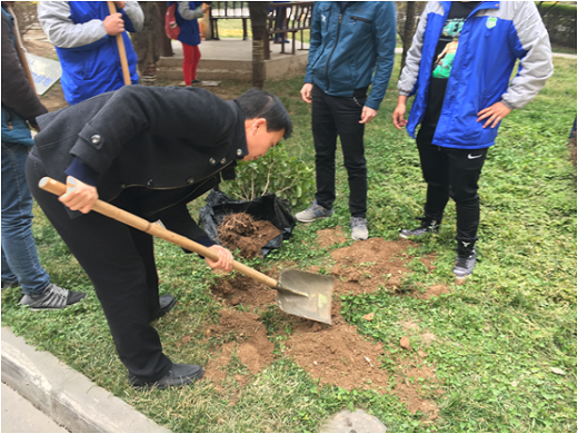 为响应市教育局关于“你我共参与 西安更美丽”的活动号召,为了巩固我校环境建设工作成果,为全市治污减霾工作增添一份力量。在校党支部领导下,学校总务处和校团支部、德育处组织青年男教工及学生团员,开展了“美丽校园我动手•我为校园添绿衣”植树节主题实践活动。