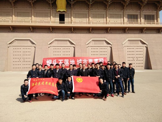 西安东运用车间团总支组织团员在大明宫丹凤门开展“烟头不落地,城市更美丽”的学雷锋活动。团员青年们分成两组,一组热心的劝阻吸烟市民勿将烟头落地,另一组团员们手持垃圾袋,将公共场合卫生死角的烟头和垃圾收集起来。团员青年们在活动争当“义务清洁工”和“文明志愿者”,进一步弘扬雷锋精神和“奉献、友爱、互助、进步”的志愿者精神,推动学习雷锋活动常态化,机制化。