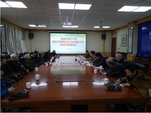 2017年2月22日,西安市育才中学在尚真楼一楼会议室召开了建校80周年纪念活动筹备工作校友代表座谈会。延安保育精神研究会代表,校友代表,老领导代表,退休教师代表等10余人,欢举一堂,忆往昔,叙情谊,寄期望,展未来。于校长,校长李助理,办公室刘主任,校庆办杨主任出席了座谈会。座谈会由办公室刘主任主持。
