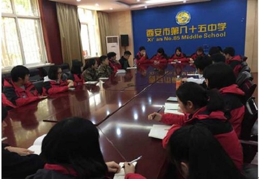 2017年2月24日,西安市第八十五中学学生会在视频会议室进行了新学期的工作讨论会活动。本次活动在24日中午准时进行。本次活动的主要目的是告知部员们新学期的工作和活动,让大家有所了解并做好充分的准备来迎接新的学期。