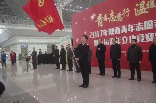 启动仪式上,与会领导分别向“共青团服务岗”、“青年志愿者之家”、“共青团号列车”以及“春运青年突击队”、“青年志愿者服务队”等“青”字号队伍进行了授牌、授旗,该段团委书记张伟代表春运志愿者接受了“铁路春运青年突击队”的授旗。随后,进行了“青春志愿行、温暖回家路”的宣誓。