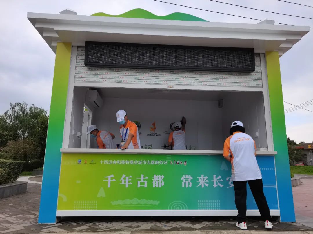 9月4日十四运会西安赛区阎良区城市志愿“小秦宝”上岗啦!为做好十四运会城市志愿服务工作,更好服务阎良本地市民和来自四面八方的观众游客,阎良区在场馆附近设立两个户外城市志愿服务岗亭,分别为石川河极限运动中心和阎富友谊桥东城市志愿服务岗亭,“小秦宝”们以城市志愿服务岗亭为依托,全力做好阎良区城市志愿服务工作。