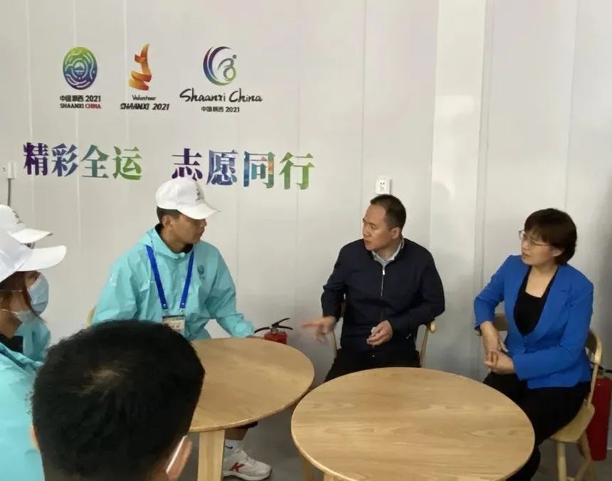 活动中,团市委副书记王飞、市委文明办志愿服务处党支部副书记马旭周与城市志愿者及社会志愿者代表们进行座谈交流,表达了亲切的问候,详细询问了在岗服务的工作情况,查看志愿服务日志等相关资料,对志愿者们勇于担当、乐于奉献的精神表示肯定;王飞表示,残特奥会开幕在即,希望志愿者们要继续保持良好的精神风貌,再接再厉,坚守岗位高质量做好志愿服务工作,当好“全运代言人”、“雁塔代言人”为十四运会和残特奥会注入更多青春力量。