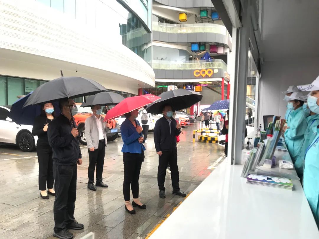9月27日下午,在国庆节即将到来之际,团市委副书记王飞,团市委城乡部部长岳强,市委文明办志愿服务处党支部副书记马旭周,团市委城乡部副部长赵戈一行来到雁塔区小寨国贸城市志愿服务岗亭看望慰问雁塔区十四运城市志愿者和社会志愿者,并送去陕西特色小吃礼盒、牛奶等慰问品。区委常委、宣传部部长吴艳玲,区委宣传部副部长骆辉,共青团雁塔区委副书记刘凯参加。
