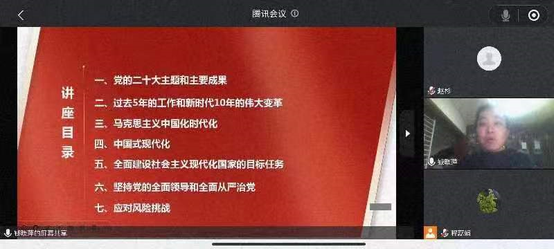 会议特邀共青团西安市委青年讲师团讲师、西安文理学院马克思主义学院院长钱晓萍教授以《夺取新时代中国特色社会主义新胜利的政治宣言和行动纲领》为题开展了一堂生动的宣讲。