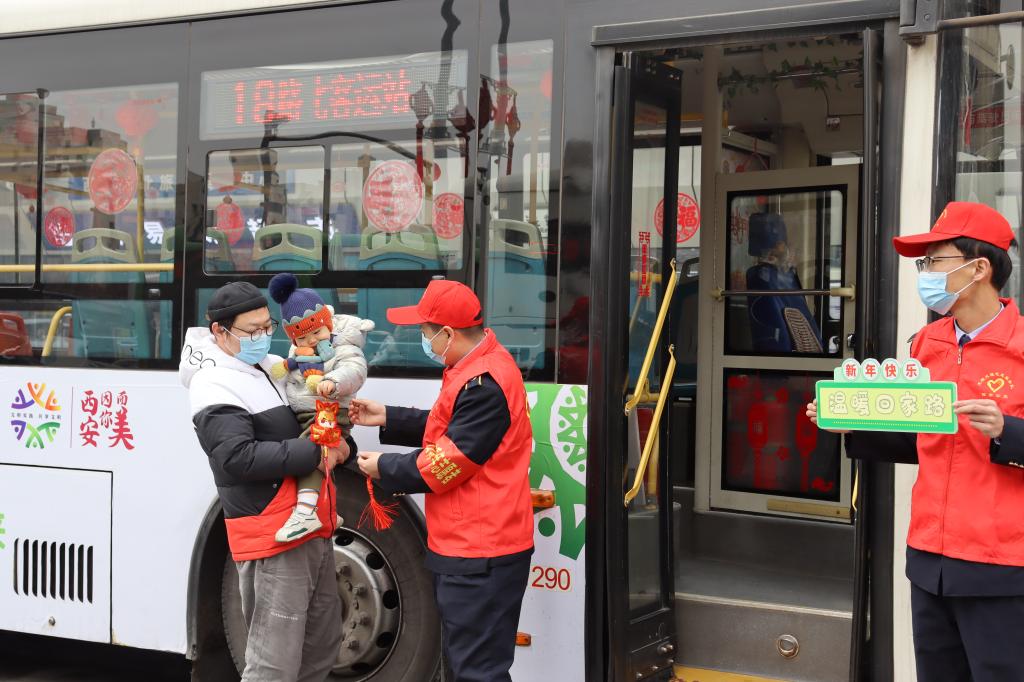 春节期间,为了方便旅客出行,公交集团开通了春节兵马俑旅游定制公交线路。西安公交集团青年志愿者主动为游客介绍春节期间兵马俑旅游定制公交及其他旅游定制公交线路的相关情况,详细讲解如何在APP上购票及乘车流程,并将亲手书写的“福”字及新春小礼品送给首批乘客当作新年礼物送给来自全国各地的游客。假期西安北站夜间加开及晚点列车较多,公交集团落实“三方联动”机制,启动高铁晚点应急保障预案,运行10部备勤车辆,青年突击队的青年志愿者们热情服务,及时快速疏散到站旅客。
