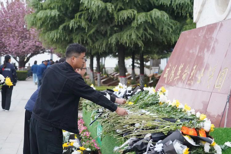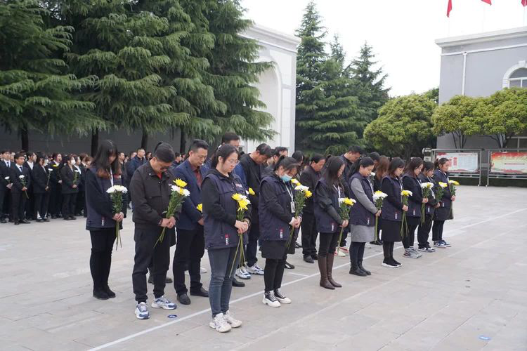 缅怀活动正式开始后,在革命烈士纪念碑前,全体人员神情庄重,气氛庄严肃穆。大家都静静地肃立着,鲜艳的团旗在空中飘扬,青年干部肃立在烈士纪念碑前,大家怀着无比崇敬的心情向烈士纪念碑鞠躬默哀三分钟,以寄托对先烈们的无限敬意和绵绵哀思。