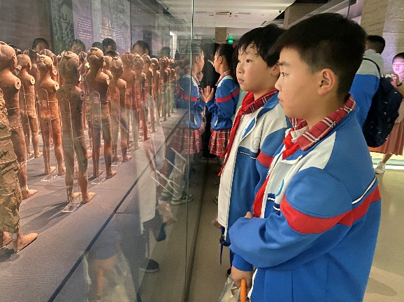 下午,小葵花们走进汉景帝阳陵博物院,该博物馆依托西汉景帝与王皇后同茔异穴合葬的阳陵陵园而建,是中国占地面积最大的博物馆。小葵花们先后参观了汉阳陵考古陈列馆和地下遗址博物馆,陵区陪葬坑中出土的武士俑、仕女俑、动物俑成千上万、生动异常,呈现出千年前的大汉盛景,通过观赏众多的汉代文物精品、身临其境地感受考古发掘和文物修复的真实场景,激发起了小葵花们了解汉代历史的兴趣和热情。小葵花们纷纷表示在这里让大家大开眼界,有幸与文物和遗址“零距离”接触。