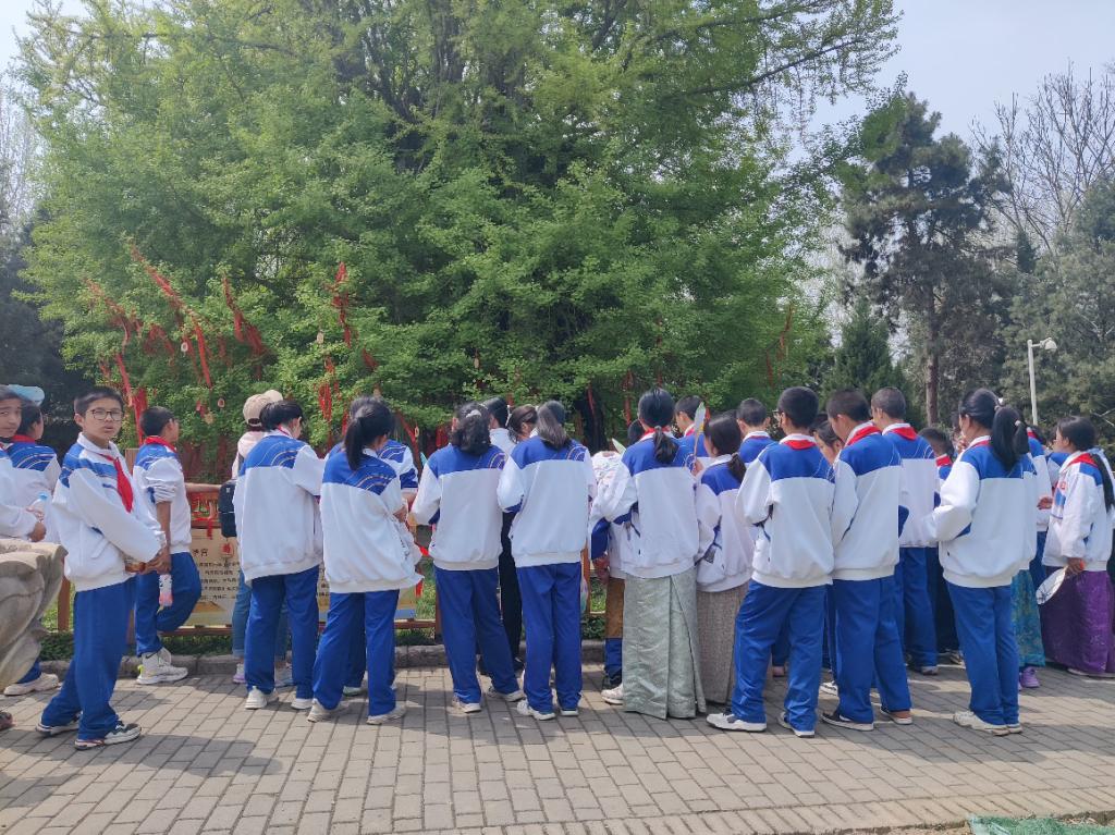 在核心景区宗圣宫内,“小葵花”们围绕着一棵巨大的银杏树驻足观看,并连连赞叹。学生扎西卓玛发出了疑问:“这棵树真的有两千多年了吗?”工作人员解释道:“这棵银杏树的树龄有两千六百多年了,据说它就是当年老子来到这里以后,亲手种的银杏树”。