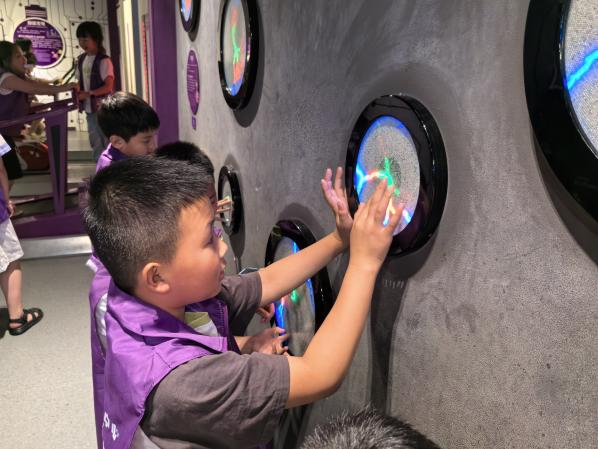 在机械展区,各种各样的精妙机械将机械之美展现的淋漓尽致,从测量工具到传动装置,无时无刻不在激发着“小葵花”们的好奇心,也使他们了解到齿轮传动、链条传动、螺旋传动、连杆升降等多个机械原理。在电磁展区,“小葵花”们沿着科学家的足迹,体验了科学探索的方法与步骤,通过展示、互动将电、磁和它们的关系直观表达了出来,使“小葵花”们认识到了电磁对我们日常生活的重要作用。在数学、光、声音、力四个分主题的参观和人工智能展区,“小葵花”们通过互动体验,探究了从基础科学到前沿应用的奥秘。科技馆内的展品深深地吸引着“小葵花”们的注意力,他们迫不及待地讨论着,用心体验着,愉快操作着,从中明白了许多科学道理,亲身领略到科技的神奇!