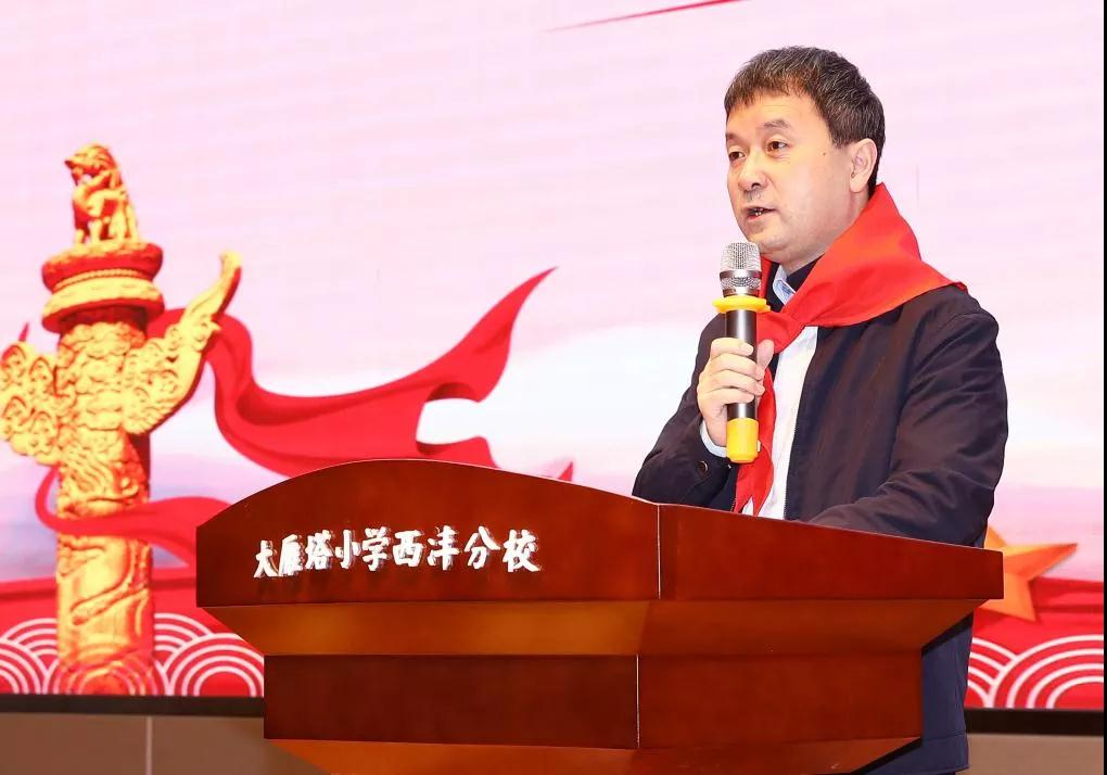 大雁塔小学西沣分校执行校长朱隆代表学校党组织讲话。