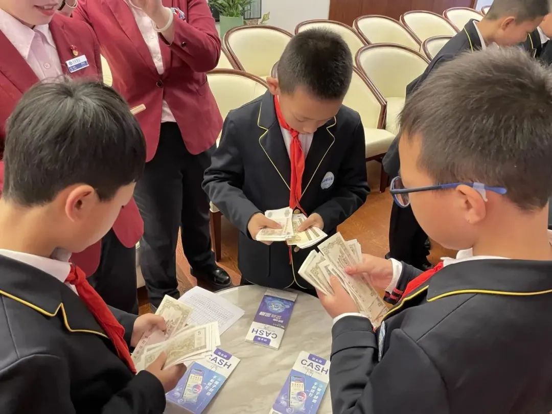 上午,小葵花们走进兴业银行西安分行,体验了一次快乐的金融知识之旅。首先,小葵花们来到兴业银行西安分行私行中心,由工作人员带领大家参观体验大厅中各种设施,自助存取款机、智慧柜员机等设备用途,介绍了工作人员为客户办理业务的流程等,使大家对银行有了进一步的了解。接着,小葵花们来到了金融知识课堂,工作人员带着大家学习了货币、银行、收支、理财四个版块的内容,包括货币的起源和发展、如何识别真假货币等日常金融知识,通过与小葵花的现场问答,将活动气氛推向高潮。工作人员还现场向小葵花们展示单指、多指点钞的手法,并教授小葵花们学习简单便捷的点钞技能,组织大家现场进行点钞比赛,评比出当天的"点钞小达人"。随后,工作人员为参加活动的小葵花们颁发了“小小银行家”证书,圆满结束本次小小银行家之旅。六年级的杜炎柳说:“在这次的银行参观中,我了解到了很多知识,包括货币和银行的由来、怎么辨别真假人民币等,在点钞比赛环节,我还学会了一种又快又准的点钞方法,真的是收获满满,也让我对银行有了新的认识。”