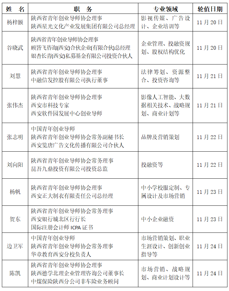 为深入贯彻落实党的二十大精神,推进学习贯彻习近平新时代中国特色社会主义思想主题教育,聚焦全省“三个年”活动,积极投身全市八个方面重点工作,推动西安共青团服务大学生“星海计划”落实见效,营造青年创新创业良好氛围,团市委携手省青年创业导师协会开展青年创业免费咨询服务,百余名创业导师帮助广大创业青年与小微企业校准发展航向、启迪创业智慧、助飞创业梦想。省青年创业导师协会常设导师门诊,轮值导师从商业模式、金融、财税、法律、品牌、营销、管理、电商等不同维度,为创业青年和小微企业提供全程公益指导。