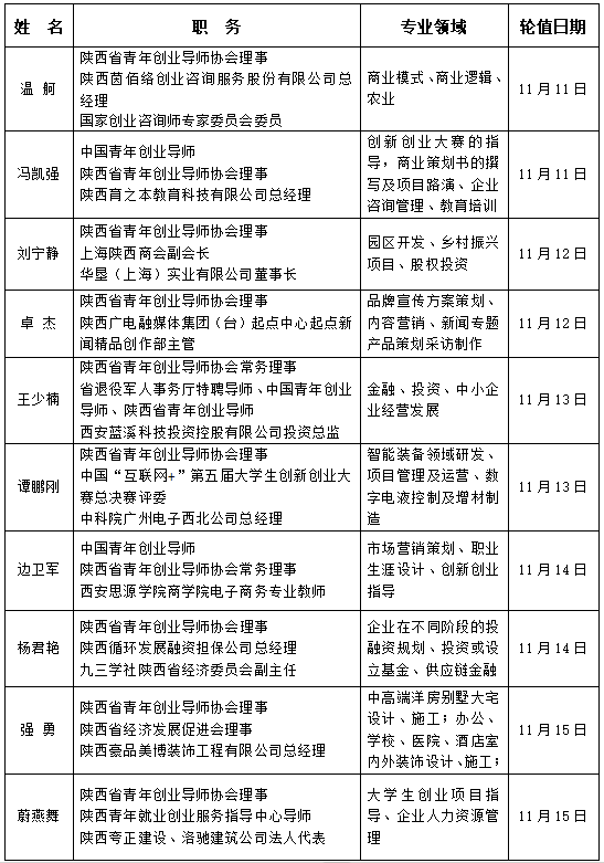 本周创业导师咨询服务值班