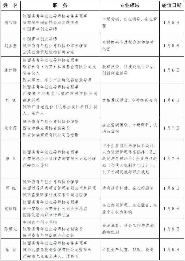 为推动共青团服务青年就业创业工作走深走实,营造全市创新创业良好氛围,2026年,团市委将继续携手省青年创业导师协会开展青年创业免费咨询服务,轮值导师从商业模式、金融、财税、法律、品牌、营销、管理、电商等不同维度,为创业青年和小微企业提供全程公益指导。