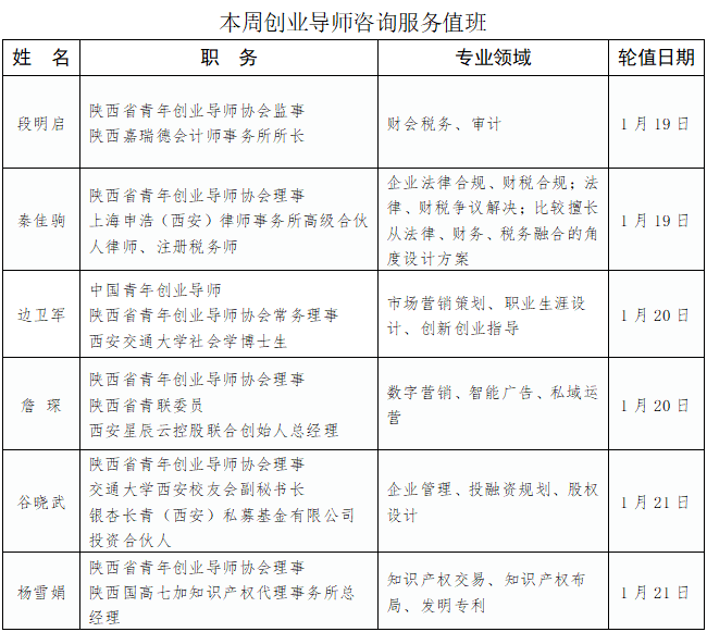 为推动共青团服务青年就业创业工作走深走实,营造全市创新创业良好氛围,2026年,团市委将继续携手省青年创业导师协会开展青年创业免费咨询服务,轮值导师从商业模式、金融、财税、法律、品牌、营销、管理、电商等不同维度,为创业青年和小微企业提供全程公益指导。