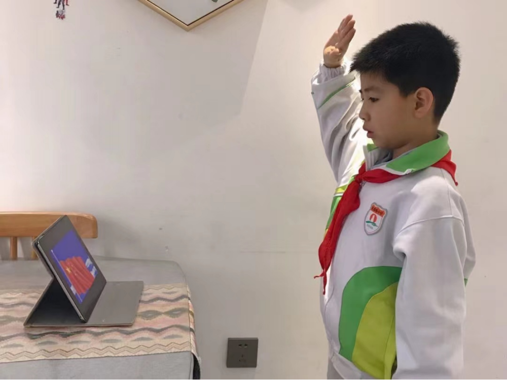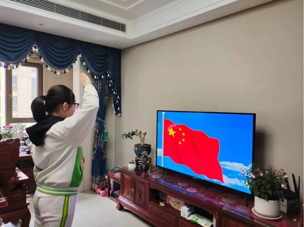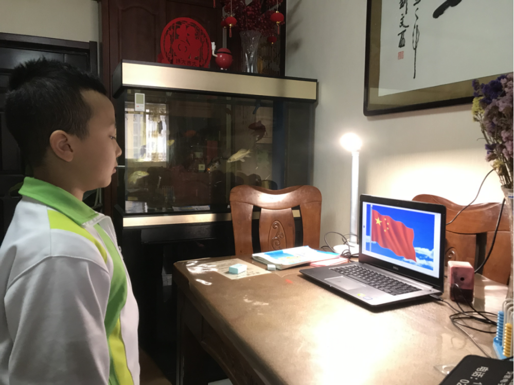 停课不停学,我们相约云端,集结线上升旗,厚植爱国情怀。雁小西沣的师生着装整齐,认真参与线上升旗仪式。
