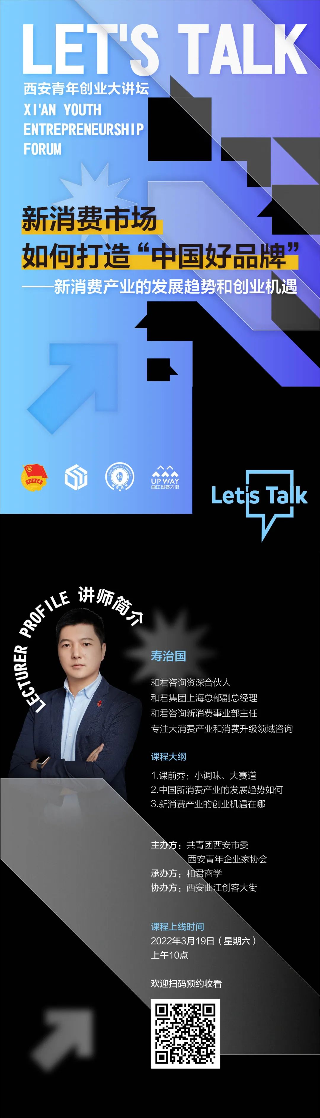 西安青年创业大讲坛|开讲预告:新消费市场如何打造“中国好品牌”(长期可扫码收看)