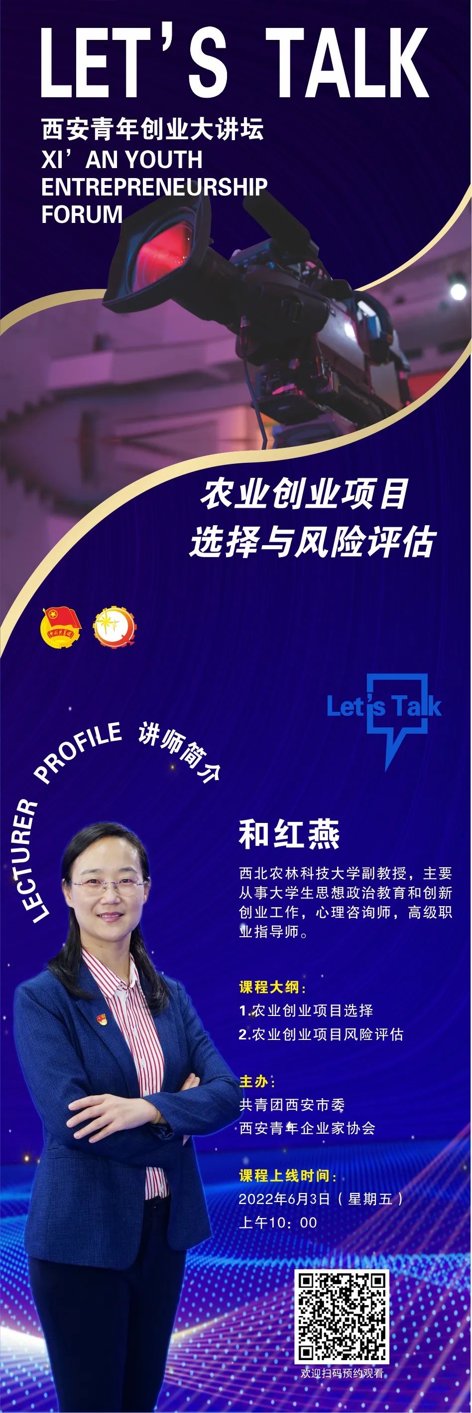 西安青年创业大讲坛|开讲预告:农业创业项目选择与风险评估(长期可扫码收看)
